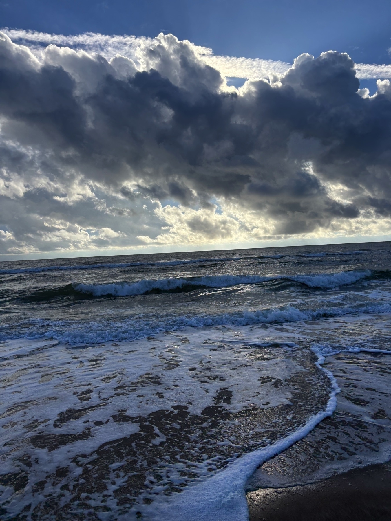 The clouds drifted out to see at around 9:00 and a (relatively) clear blue sky took over. Pippen got to chase a few sanderlings into the air. It was a good morning.